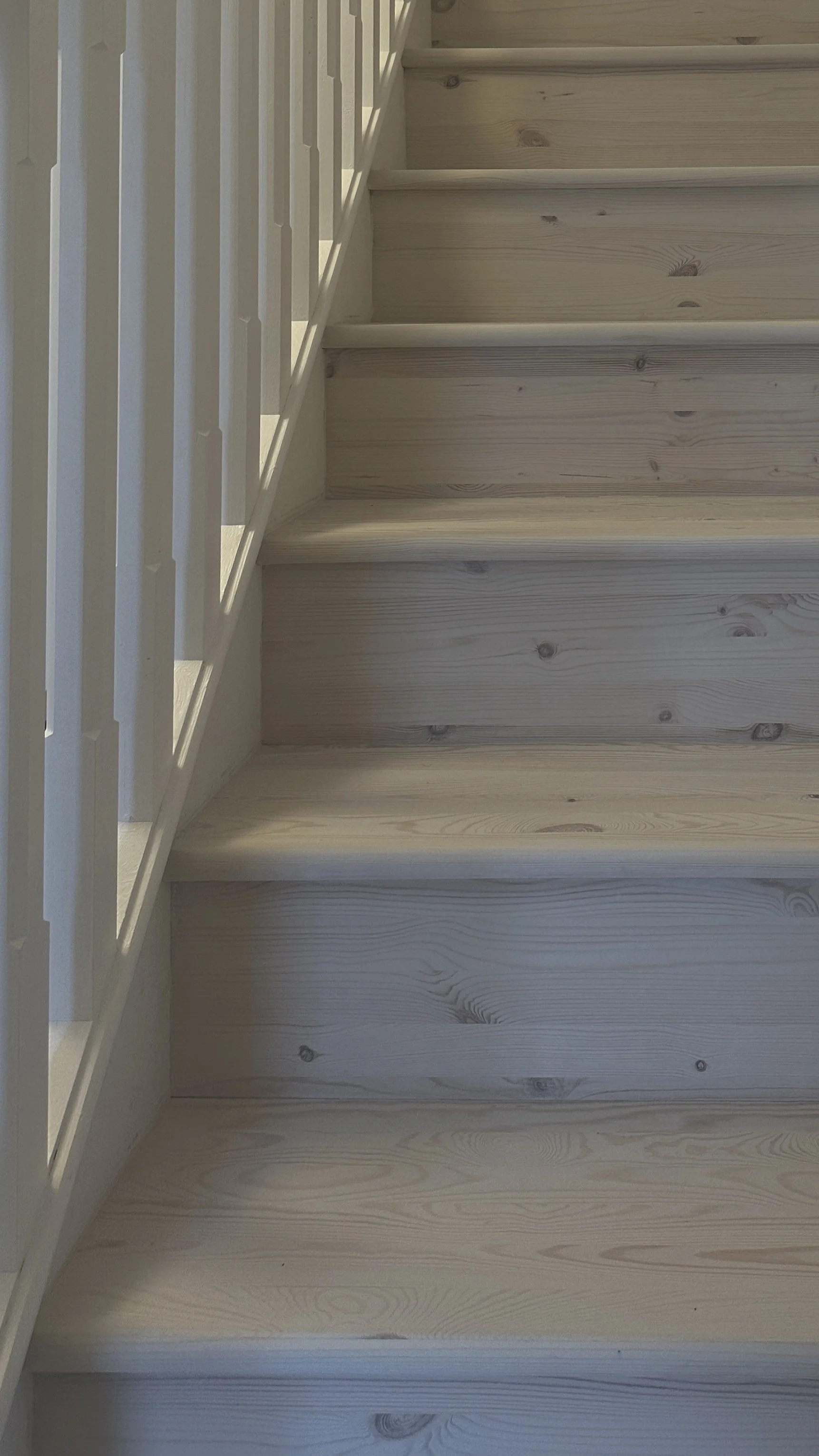 Professional sanding and refinishing of wooden stairs.We restore natural wood, carefully match tones to your interior, apply toning/staining/patina, and deliver a smooth, long-lasting finish
